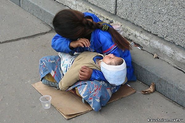 ПОЧЕМУ спит ребенок? всегда спит....на руках у попрошаек? Вы никогда не задумывались? .................................((((((((( Эту статью прочитал несколько месяцев назад. Кто автор, я не знаю.Все это время она не выходит у меня из головы. Пожалуйста, прочтите. "В переходе возле станции метро сидит женщина неопределенного возраста. Ей можно дать с ходу и тридцать, и двадцать три, и сорок два. Волосы у женщины спутаны и грязны, голова опущена в скорби. Перед женщиной на заплеванном полу перехода лежит кулек. В кулек сердобольные граждане бросают деньги. И не бросали бы, да на руках женщина держит весомый «аргумент» в пользу того, что ей деньги просто необходимы. На руках у женщины спит ребенок лет двух. Он в грязной шапочке, бывшей когда-то белой, в спортивном костюмчике. Переход – место достаточно оживленное. И течет нескончаемым потоком людская толпа, и звенит мелочь в кульке, и шуршат купюры. Я ходил мимо женщины около месяца. Я догадывался, кому уходят деньги, жертвуемые многочисленными прохожими. Уж сколько говорено, сколько написано, но народ наш такой – жалостливый. Жалостливый, до слез. Готов народ наш отдать последнюю рубашку свою, последние копейки из кармана вытряхнуть. Подал такому «несчастному» – и чувствуешь, что у тебя все еще не так плохо. Помог, вроде бы как. Хорошее дело сделал… Я ходил мимо попрошайки месяц. Не подавал, так как не хотел, чтобы на мои деньги какой-нибудь негодяй купил себе кирпича одну штуку, да вставил в стену нового дома-дворца своего. Пускай будет дыра у него в стене, у негодяя этого. Не будет кирпича от меня. Но, судя по тому, как попрошайке подавали, хозяин ее имел уже несколько домов-дворцов. Ну и попрошайке что-то перепадает, конечно. Бутылка водки на вечер, да шаурма. Хозяева таких «точек» попрошайничества имеют немало, но отличаются жадностью. И жестокостью. На том и держится их супердоходный бизнес. На деньгах да на страхе. Никто из опускающих монетку в кулечек не знает, что «встать» на место возле Владимирского собора невозможно, а хождение по вагонам метро с уныло-тягучим «простите, что я до вас обращаюся» стоит от 20 долларов в день. Или – знает? В таком случае – знает, но подает? Никто из добряков, жертвующих «мадонне с младенцем», не задумывается над еще одним вопросом. Над одним несоответствием, буквально бросающимся в глаза. Спустя месяц хождения мимо попрошайки меня вдруг как током ударило, и я, остановившись в многолюдном переходе, уставился на малыша, одетого в неизменно-грязный спортивный костюмчик. Я понял, что именно казалось мне «неправильным», если можно назвать «правильным» уже само нахождение ребенка в грязном подземном переходе с утра до вечера. Ребенок спал. Ни всхлипа, ни вскрика. Спал, уткнувшись личиком в колено той, кто представлялась его мамой. Попрошайка подняла на меня глаза. Наши взгляды встретились. Бьюсь об заклад, она поняла то, что понял я… У кого из вас, уважаемые читатели, есть дети? Вспомните, как часто они спали в возрасте 1-2-3-х лет? Час, два, максимум три (не подряд) дневного сна, и снова – движение. За весь месяц каждодневного моего хождения по переходу я НИ РАЗУ не видел ребенка бодрствующим! Я смотрел на маленького человечка, уткнувшегося в колено «мамы», и страшное мое подозрение постепенно формировалось в твердую уверенность. – Почему он спит все время? – спросил я, уставившись на ребенк